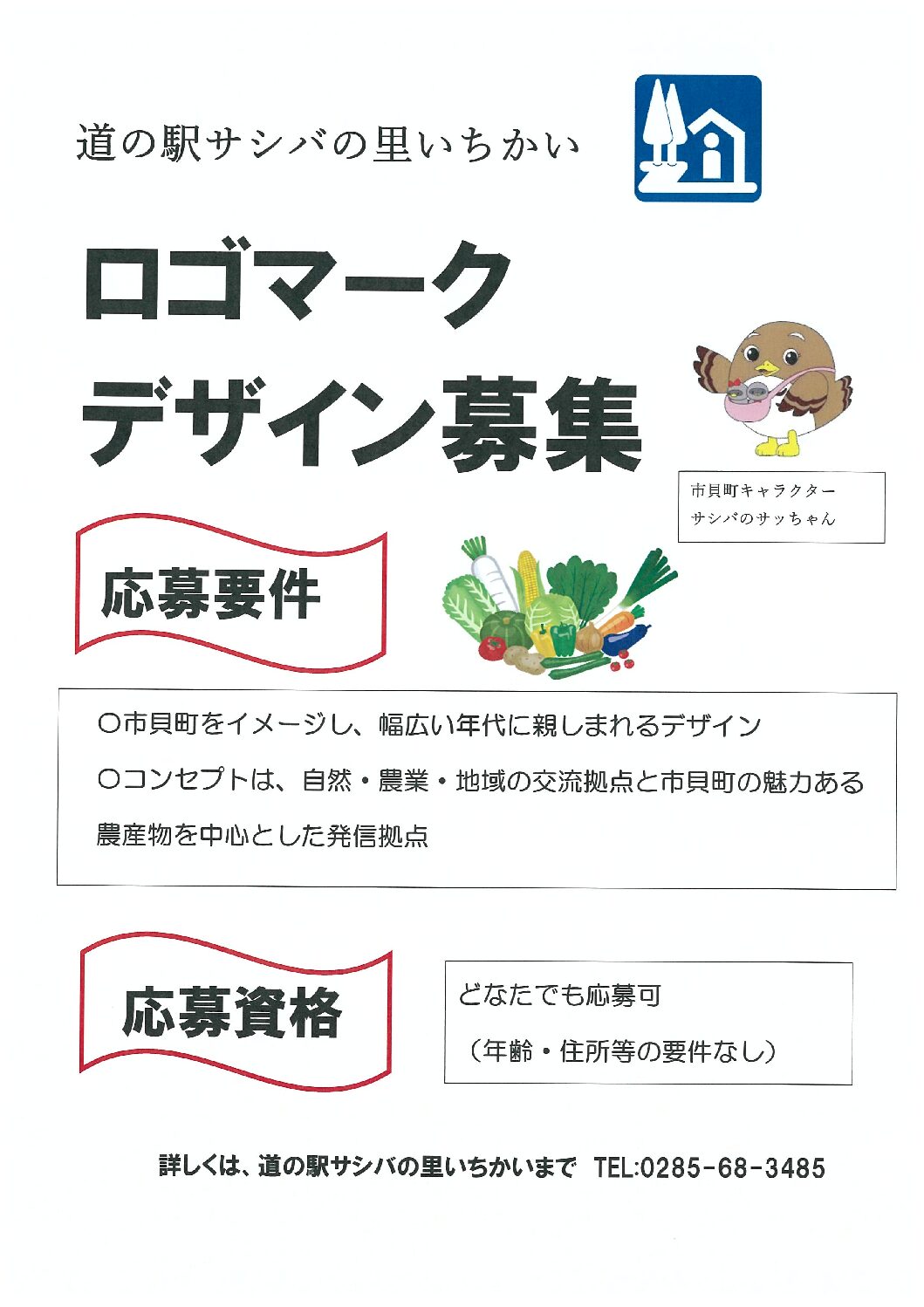 道の駅サシバの里いちかいでは、ロゴ・シンボルマークを募集します。 幅広い年代に親しまれるデザインで市貝町をイメージして下さい。 詳しくは、募集要項をご確認お願いします → ロゴマーク募集要項 ご応募のための専用フォームは …